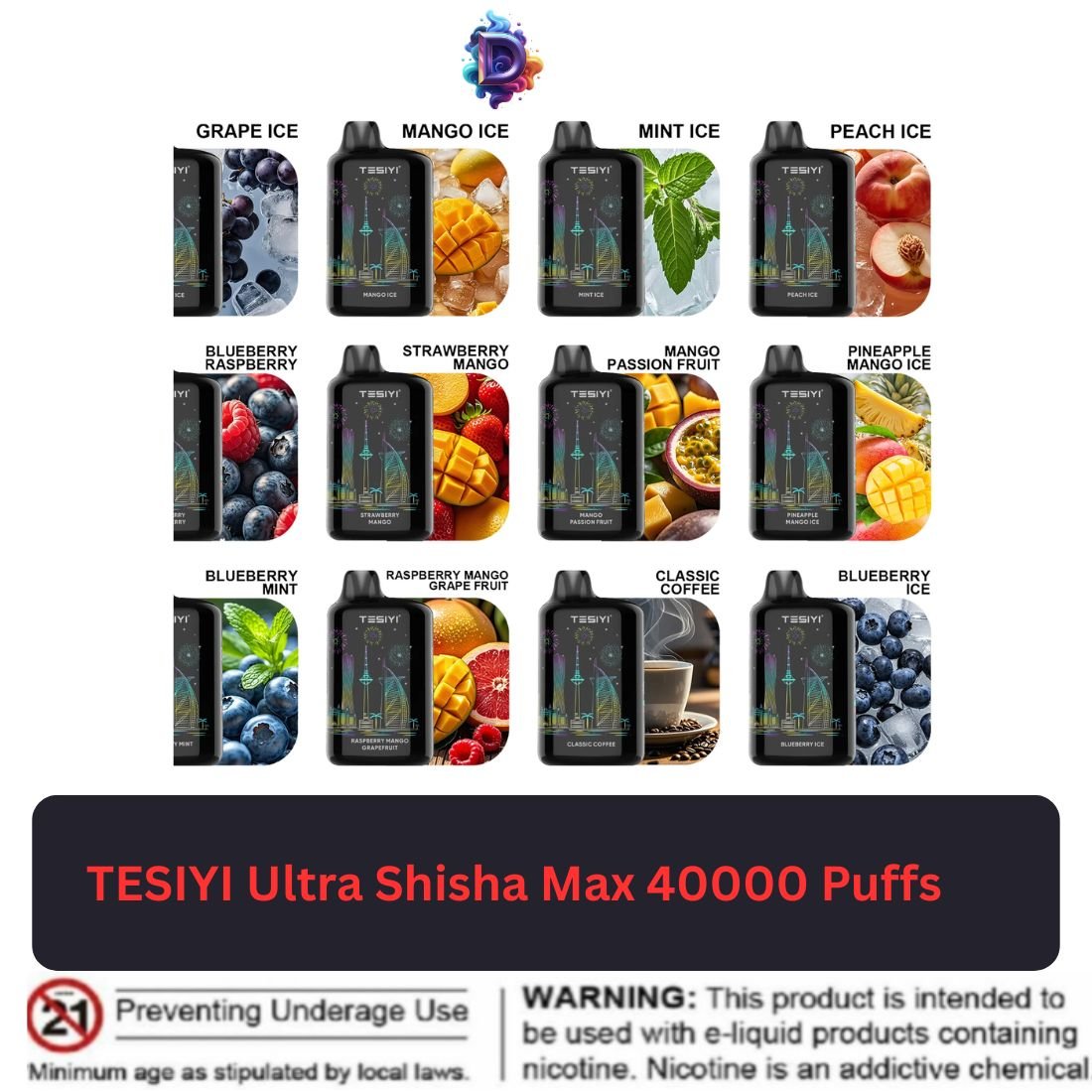 Flavors of TESIYI Ultra Shisha Max 40k Puffs